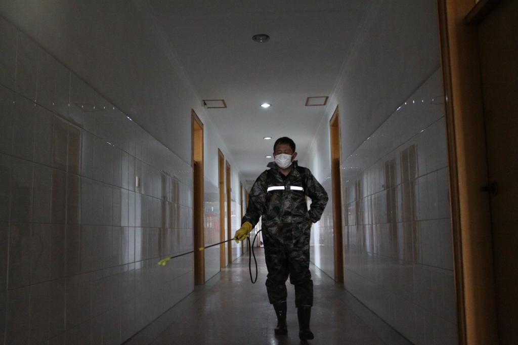 2月4日下午4:30,在皖北康复医院南区大门口,笔者见到了“全副武装”的康复治疗中心副主任金涛,来不及多问一句,金涛便带着消杀物品上了“战场”。