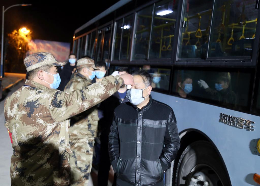 “大家前后保持一米距离……每一个人必须接受体温检测,我们不怕麻烦,你们怕什么……”