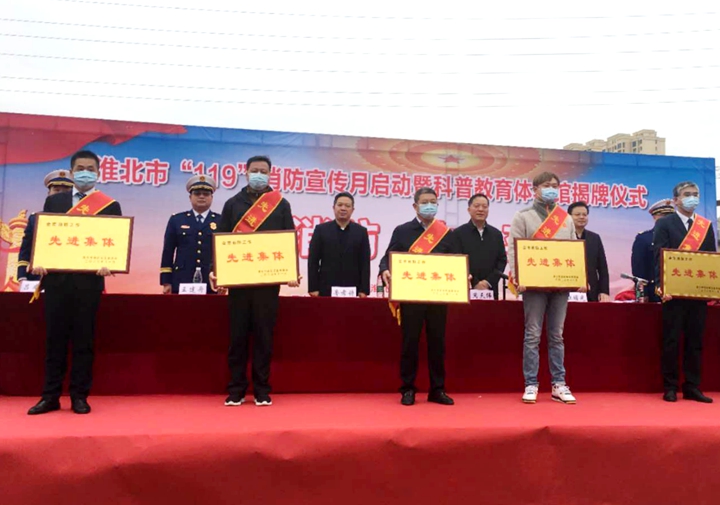 11月5日上午,在淮北市“119”消防宣传月活动启动暨市消防科普教育体验馆揭牌仪式上,英国365集团官网集团荣获“全市消防工作先进集体”称号。