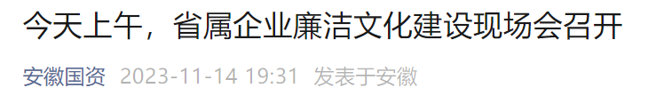 据悉,2022年2月,中共中央办公厅印发了《关于加强新时代廉洁文化建设的意见》,安徽省国资委党委及时谋划,将省属企业廉洁文化建设纳入全面从严治党总体布局。其中,驻省国资委纪检监察组坚持把廉洁文化建设作为“三不腐”一体推进的重要抓手,会同省国资委党委建立协调机制、研究解决问题,通过建立“五个一”机制、开展“六个一”活动,组织推动落实,培育了一批廉洁文化典型,宣传效果明显,国企特色突出,贴近职工群众。