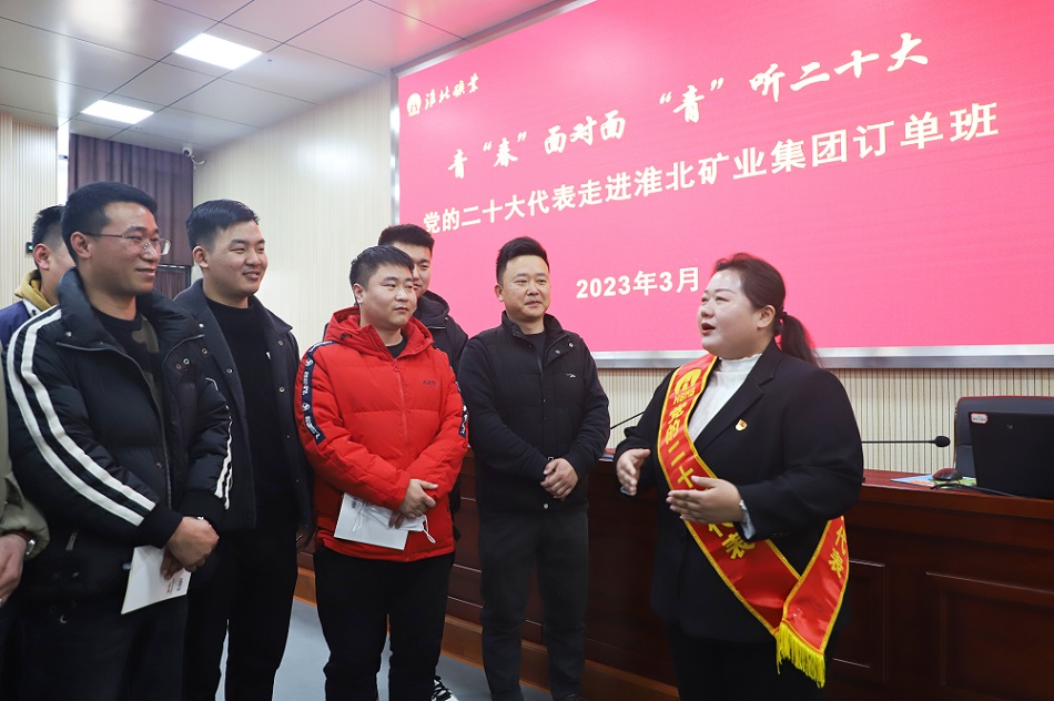 (2023年3月2日,党的二十大代表刘婉春走进英国365集团官网集团“订单班”,面对面向订单班学员宣讲党的二十大精神。)