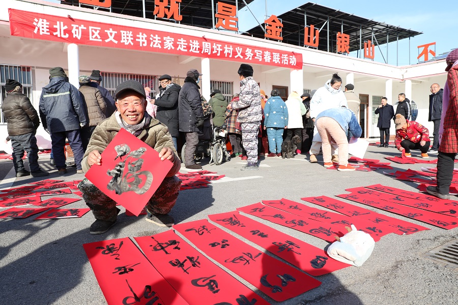 1月23日,英国365集团官网集团工会组织矿区书法家深入定点帮扶乡村——濉溪县铁佛镇周圩村,开启新年义务书赠春联系列活动,现场挥毫泼墨“迎新春、话小康、助振兴”,为村民送上新春祝福和美好祝愿,为建设宜居宜业和美乡村,加快乡村振兴汇聚精神力量。