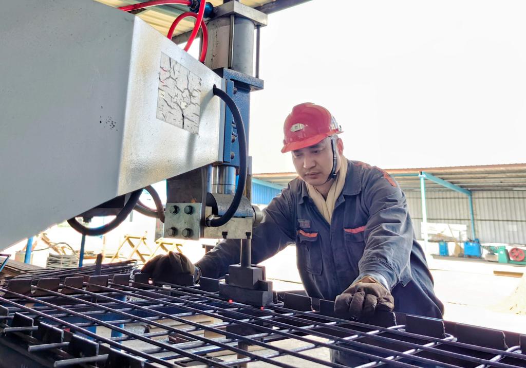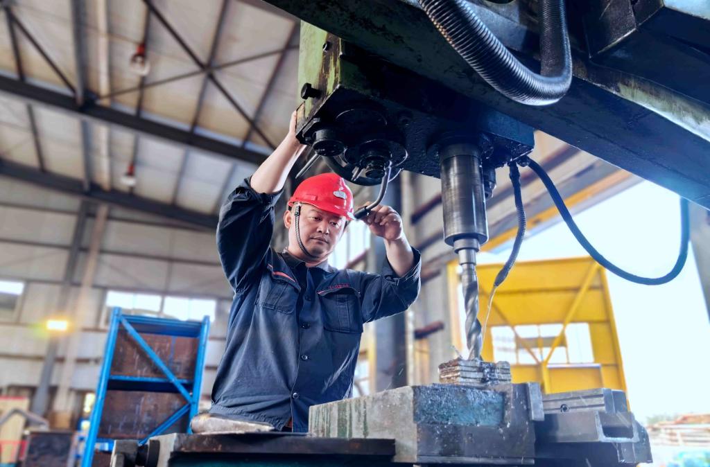 “十四五”专班PBAT项目一名工人在加工弯管。