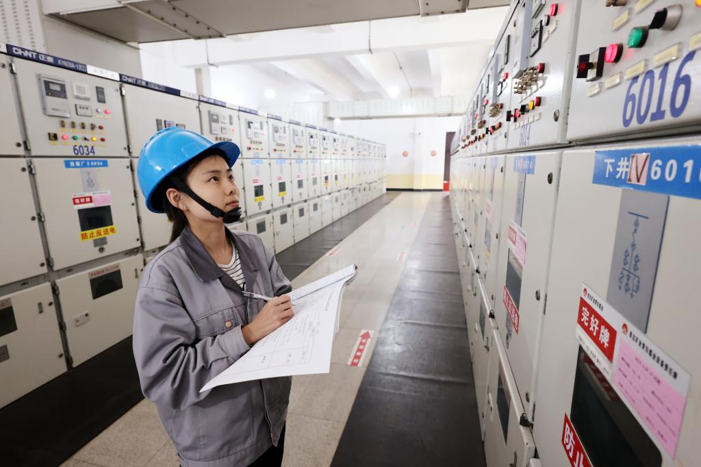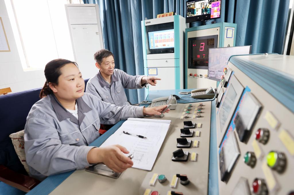 热电分公司生产技术科科长刘国中在中控室检查生产数据。
