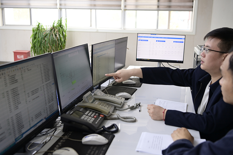 在调度指挥中心,季跃、郭路路两人正在线上比对监测数据。“五一”期间,为让工友享受假期快乐时光,他们放弃轮休的机会,选择坚守在岗,全天候监测各类安全数据变化,用行动守护矿井安全。
