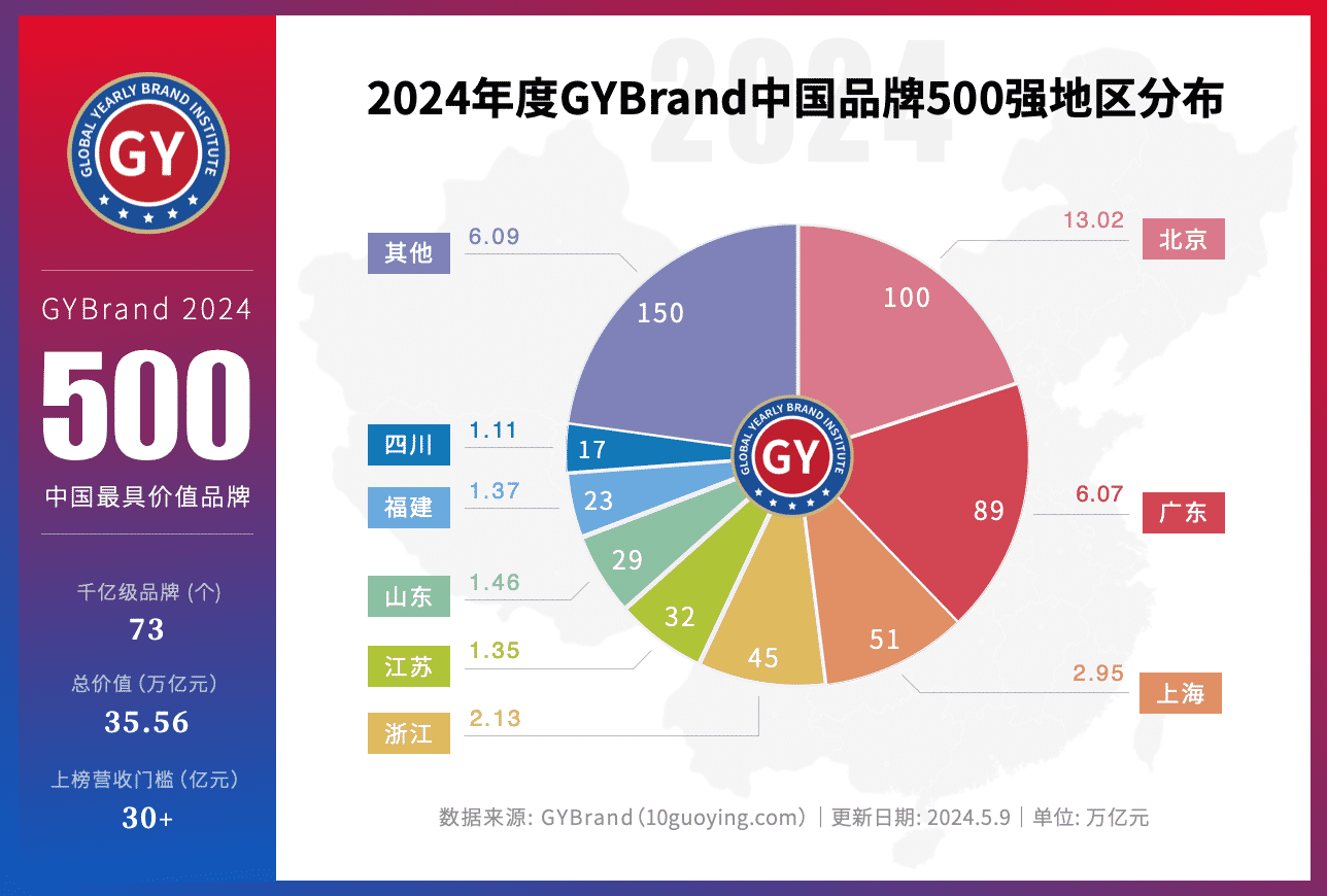 安徽入选品牌数量有12个(排名第10位),较去年增加1个,其中有1个进入2024中国最具价值品牌100强;上榜品牌总价值5867亿元(排名第11位)。一起来看看GYBrand最新中国品牌价值500强名单中,安徽省有哪些龙头企业入选吧。