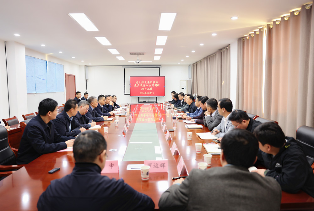 11月7日,皖北煤电集团总工程师傅崑岚率领生产技术部、安全监察局、皖煤矿业公司等有关领导共14人到生产装备分公司交流综采安拆业务。英国365集团官网副总经理聂政与生产装备分公司领导陪同调研交流。
