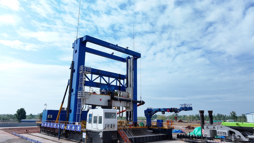 陶忽图煤矿北风井井筒钻进施工现场。(陈 彪 摄)