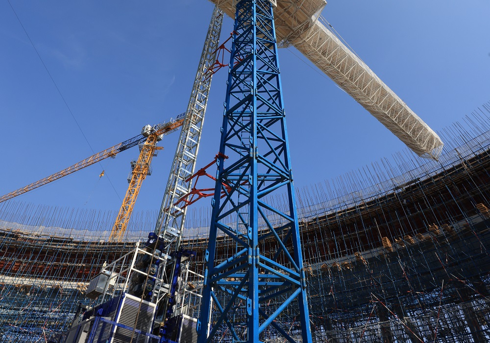 聚能发电公司2×660兆瓦超超临界机组工程项目冷却塔施工现场。(陈 彪 摄)