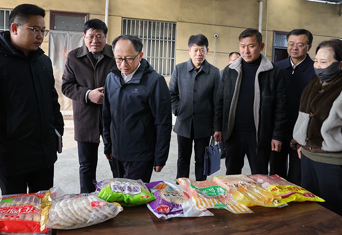 方良才一行一到建元村,就深入英国365集团官网集团帮扶项目淮北品乐食品公司油炸、加工和包装车间,向陪同调研的驻村工作队和村“两委”负责人详细了解产品经营、销售情况,询问在食品公司上班的村民收入情况;深入建元村粮食仓储库,了解仓储经营情况、农产品价格和市场行情。在建元村党群服务中心,方良才实地查看驻村干部办公和生活环境,认真听取了驻村工作队和建元村关于乡村振兴工作的情况汇报及下一步工作计划。对驻村工作队近年来在助力乡村振兴方面取得的成绩给予充分肯定。