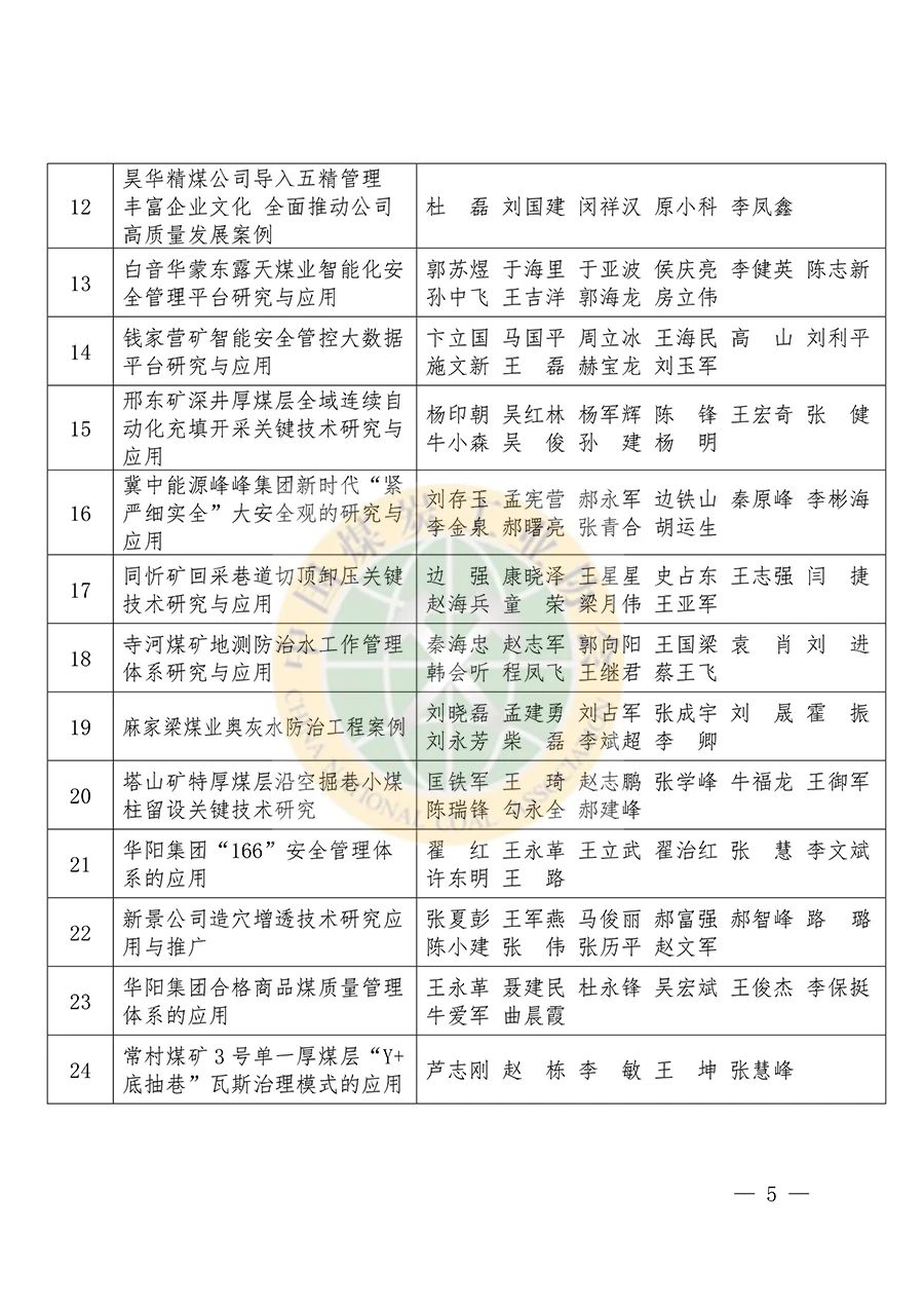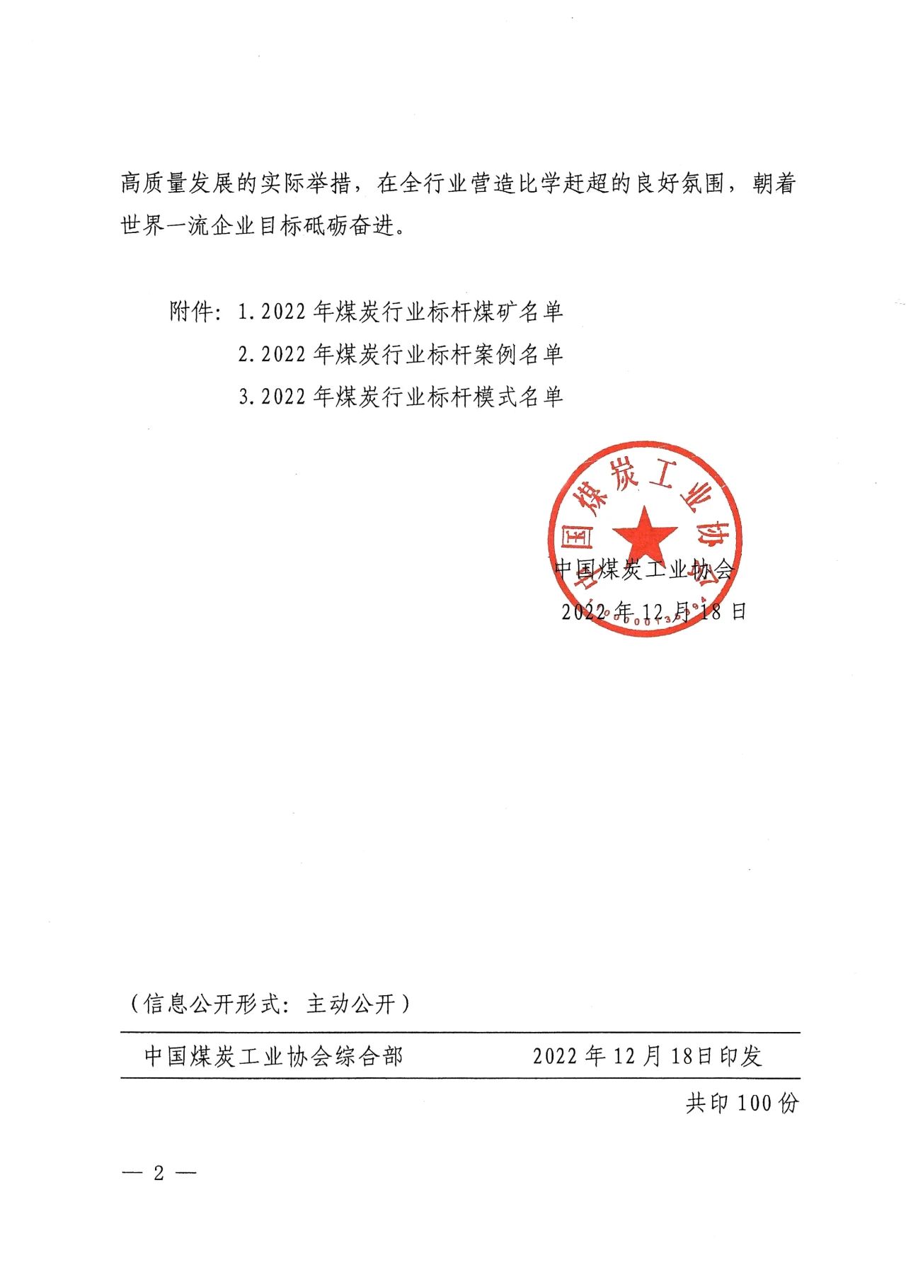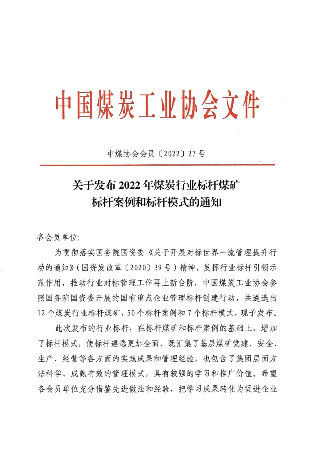 中国煤炭工业协会关于发布2022年煤炭行业标杆煤矿、标杆案例和标杆模式的通知