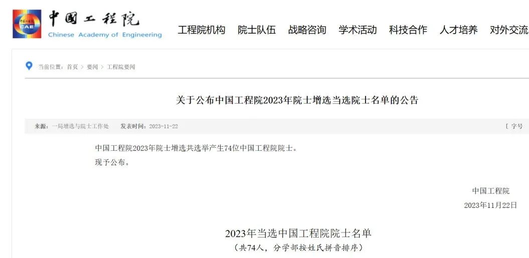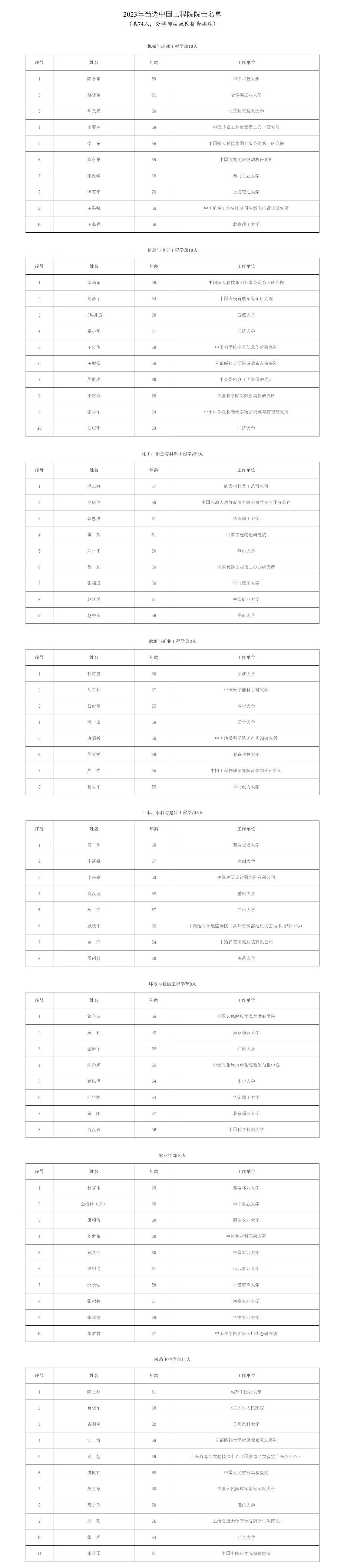 附:2023年两院院士增选结果名单: