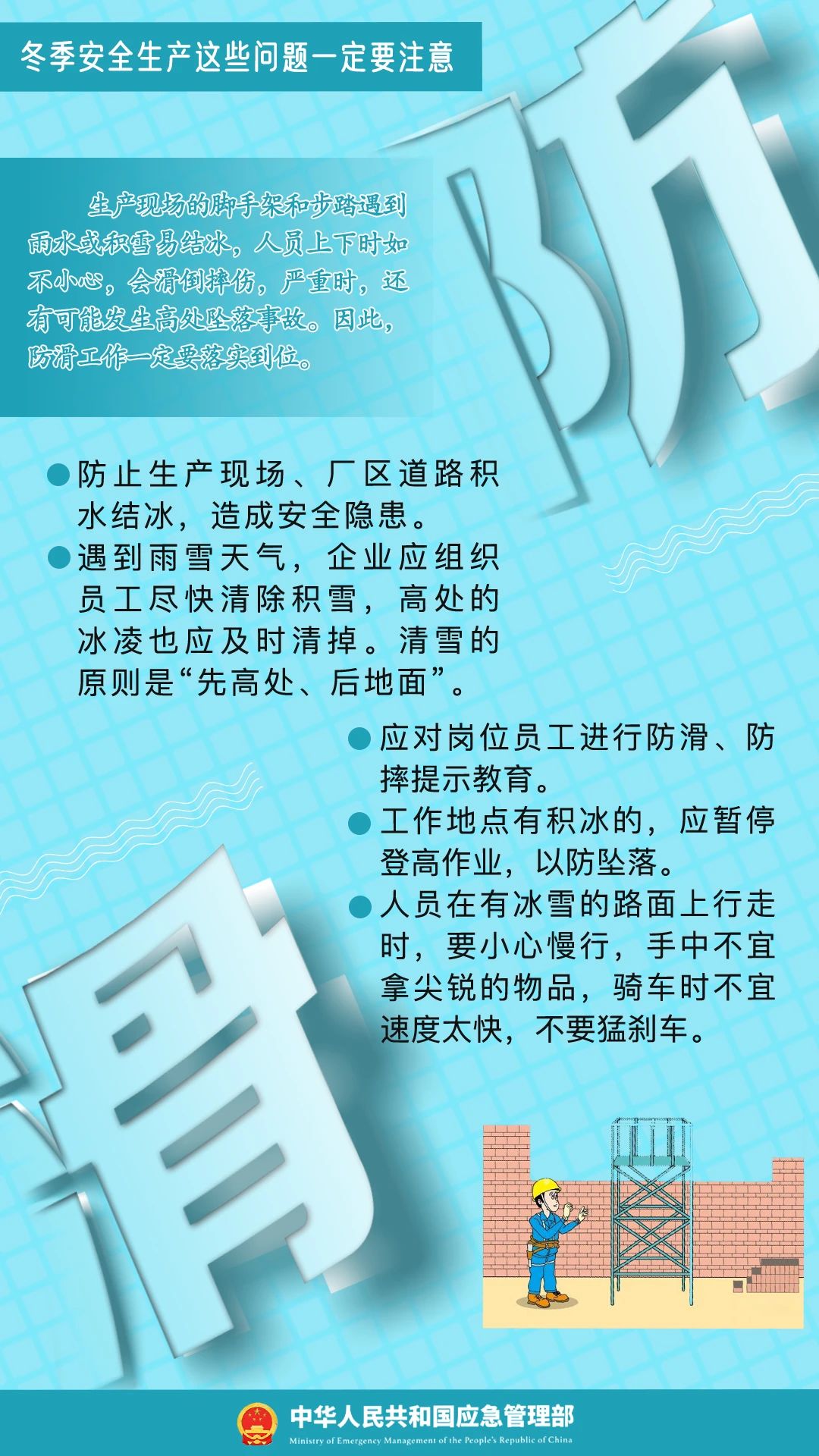 冬季寒冷、干燥,容易发生冻伤、中毒、滑跌等人身伤害事故,给企业安全生产带来影响。冬季安全生产要注意哪些问题?一起学习↓↓↓
